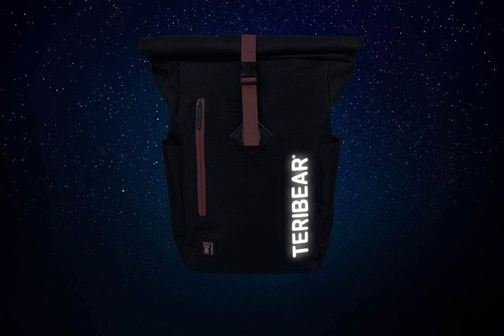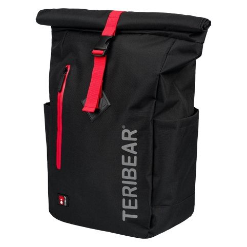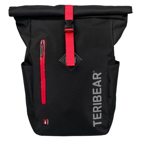 Lifestylový roll-top batoh ušitý z pevného nepromokavého materiálu, doplněný o reflexní logo TERIBEAR.