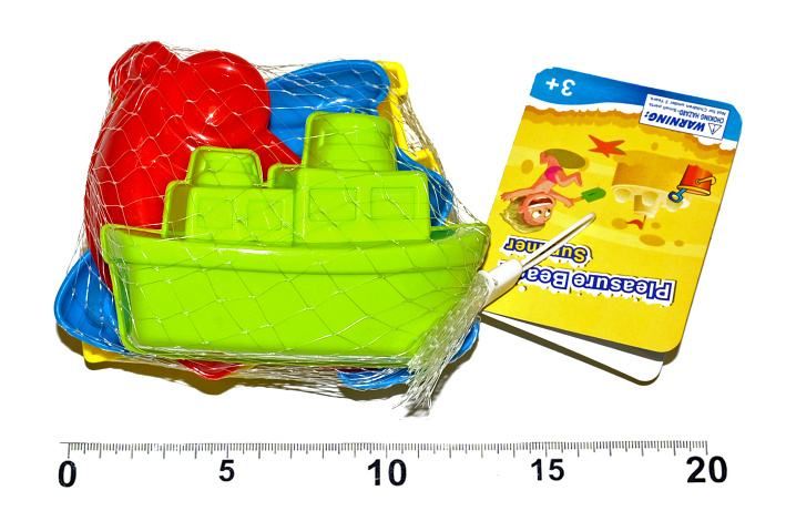 Sada na písek 4 ks. Délka 12 cm. Balení osahuje 4 formičky - loďku, auto, vlak a raketu.