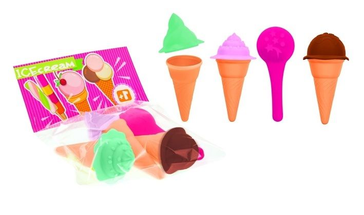 Bábovky – výroba zmrzliny obsahuje 3 kornouty a 3 kopečky zmrzliny.
