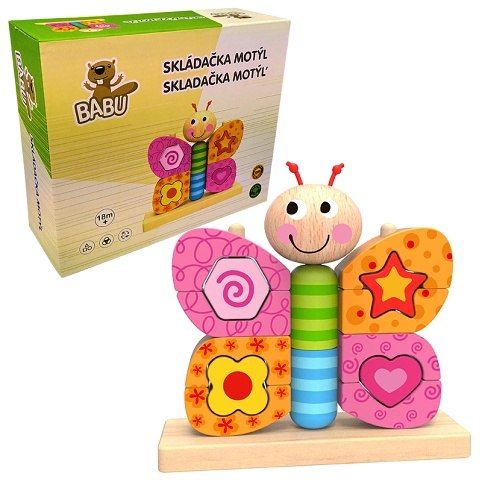 Motýl skládačka - dřevěná hračka v pestrých barvách.Hračka rozvíjí dětskou koordinaci a motoriku 18m+