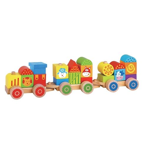 BABU – Skládačka vláček. Krásný dřevěný vláček s vagónky a nákladem. Sundej a nandej kostičky na správná místa. Jednoduchá zábavná hra, která rozvíjí dětskou motoriku i logické myšlení.