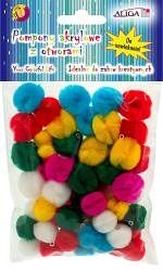 Mix barevných akrylových bambulí ve dvou velikostech s otvorem uvnitř.