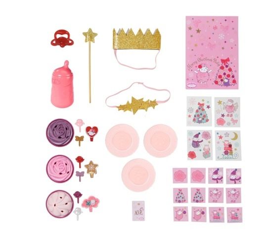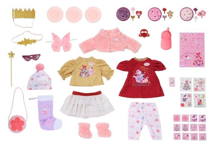 Stačí na začátku prosince mávnout kouzelnou hůlkou a už jsou tu Vánoce… No dobře, tak snadné to přece jen není. Baby Annabell Adventní kalendář však kouzelnou hůlku obsahuje. Celkem 24 překvapení čekání na Vánoce zcela jistě příjemně zkrátí. K vánočním outfitům neodmyslitelně patří i křidélka, korunka a nebeská čelenka ozdobená hvězdičkami. Když je čas vyrazit na vánoční trhy, kalendář obsahuje oblečení, ve kterém Baby Annabell rozhodně zazáří. Například zlaté tričko s dlouhým rukávem, volánovou sukýnku, vánoční červené šatičky, pohodlné kalhoty, chlupaté kozačky a teplou čepičku. K vánočnímu čaji z růžové lahvičky se skvěle hodí dortíčky s roztomilými ozdobami. Páni, panenky se tak zabraly do hraní pexesa, že skoro zapomněly pověsit na krb punčochu pro Ježíška. • Originální oblečení a doplňky pro značkovou panenku Baby Annabell. • Kvalitní příslušenství podporuje fantazii a přináší nové podněty a možnosti pro hraní. Baby Annabell Adventní kalendář 2023 s 24 překvapeními. Uvnitř se ukrývají oblečky a doplňky pro Baby Annabell.