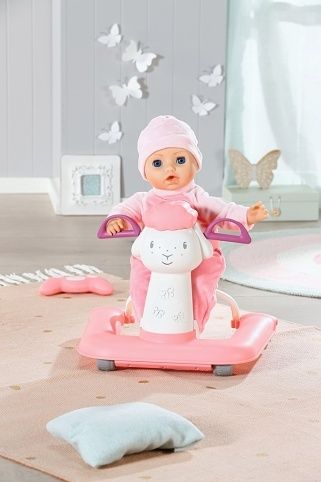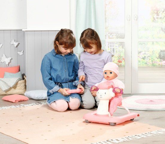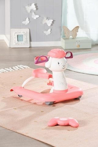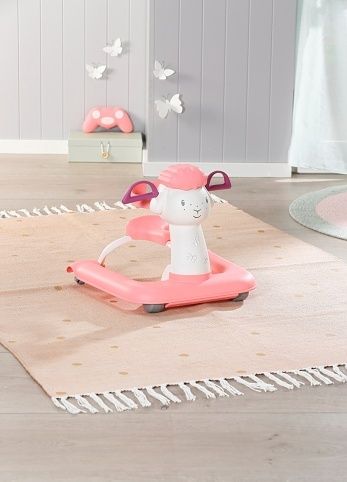 Ovečka vpřed! S chodítkem na dálkové ovládání se může Baby Annabell pohybovat po místnosti a zkoušet první krůčky. Chodítko v ovečkovém designu se pohybuje dopředu a dozadu, doleva a doprava. Přední stranu chodítka zdobí hlava roztomilé ovečky s růžovými vlásky. Pod obličejíkem ovečky je chodítko ozdobeno vyrytými motýlky. Díky fialovým madlům a růžovému držátku pro panenky zůstane Baby Annabell při učení prvních krůčků vždy stabilní a v bezpečí. Chodítko je vhodné také pro panenku Baby Annabell První krůčky. • Originální doplněk pro originální panenku Baby Annabell. • Kvalitní příslušenství podporuje fantazii a přináší nové podněty a možnosti pro hraní. • Funguje na baterie (nejsou součástí balení). Baby Annabell Chodítko na dálkové ovládání. Na baterie: 4x AA (nejsou součástí balení), 2x AAA (nejsou součástí balení)