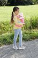 Ležet na výletě v kočárku je pro Baby Annabell nuda. Chce přece objevovat svět. Klokanka je na to přesně to pravé. Panenku lze nosit na zádech jako batoh, nebo vpředu, kde na ni její maminka hezky vidí. Vpředu jsou dokonce možné dvě polohy na sezení. Baby Annabell se dívá dopředu a vše pečlivě pozoruje, nebo je otočená k mamince a může se hezky tulit. Roztomilé potisky zobrazují oblíbená místa Baby Annabell v parku. Ráda pozoruje vážky a lekníny u rybníka. Systém popruhů se přizpůsobí různě velkým dětem.