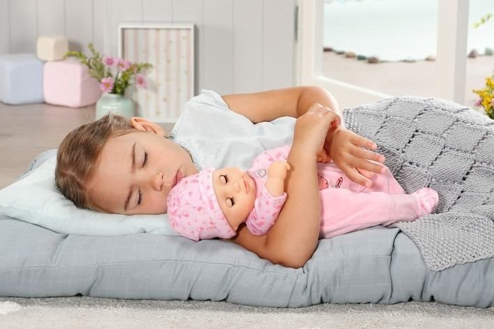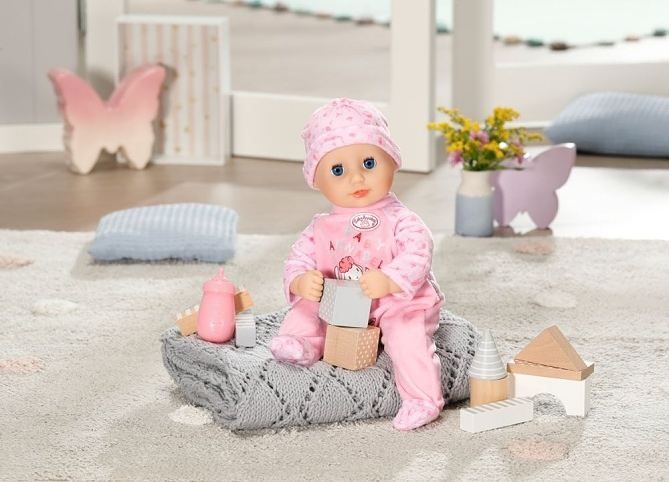 Panenka Little Annabell velikosti 36 cm už ví, čím chce být, až vyroste: spisovatelkou nebo učitelkou. Proto má ovečka na jejích růžových dupačkách v ruce tužku. Chodidla, rukávy a čepička jsou po celé ploše ozdobené písmenky. Dupačky s abecedou jsou ušit