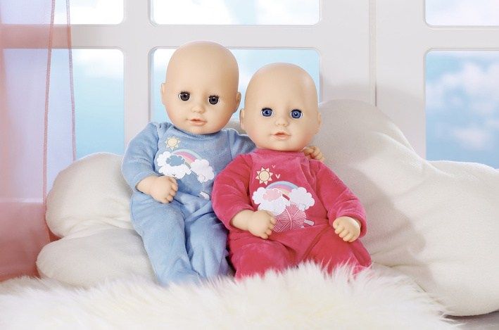 Jak už název napovídá, dupačky poskytují dostatek místa proskotačení. Ale modré a růžové dupačky jsou také ideální pro odpočineka podřimování. Dva overálky z příjemné sametové látky se snadnopřevlékají, zvládnou to i ty nejmenší dětské ručky. Díky tomu pakzbyde spousta času na hraní a odpočívání. Vtipný potisk ovečky vybízíke skoku nebo alespoň k pohledu na nebe a počítání všech barev duhy. •Originální obleček pro panenky Baby Annabell • Jednoduché převlékání• Pečlivě navržené doplňky rozvíjejí dětskou představivost aotevírají nové možnosti a témata hry Baby Annabell Dupačky pro panenky vevelikosti 36cm ve dvou různých variantách. Součástí je ramínko.