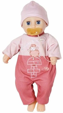 „To je ale nezbedná holčička… Když se 30 cm Rozpustilé Baby Annabell stiskne bříško, vyplivne oranžový dudlík. Připadá jí to ohromně legrační, hned se tomu směje. Po dlouhém hraní je ale malý vtipálek unavený. Když si panenka lehne na záda, zavře oči. Dupačky ve dvou tónech růžové barvy jsou ozdobeny potiskem ovečky a je velmi snadné je převléknout. A to dokonce i pro ty nejmenší ručičky. Panence nechybí ani pohodlná růžová čepička. Jednoduché funkce a snadno převlékatelné dupačky povzbuzují malé rodiče panenek, aby si vyzkoušeli první „hraní si na“. • Originální panenka Baby Annabell. • Model „pro nejmenší“ (30 cm) s měkkým tělíčkem. • S pohyby (vyplivne dudlík), zvukovými efekty a mrkacíma očima. • Obleček ve stylu „easy fit“. • Podporuje děti už od jednoho roku ke „hře na“ a poskytuje prvotní podněty pro rozvíjení smyslu pro empatii a odpovědnost. Rozpustilá Baby Annabell je panenka ve velikosti 30 cm v dupačkách a čepičce. Součástí je dudlík. S pohyby (vyplivne dudlík), zvukovými efekty a mrkacíma očima.“ Na baterie: 3x AAA (nejsou součástí balení)