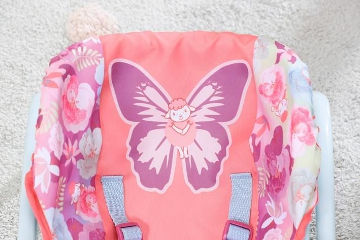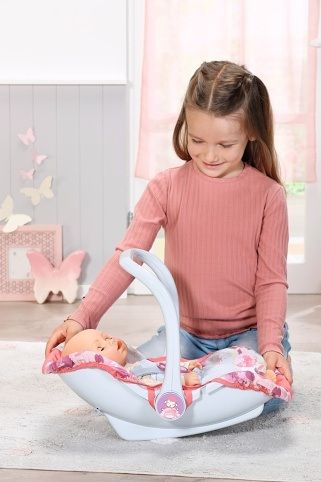 Když jde Baby Annabell s maminkou a tatínkem ven, jen ten pravý čas pro praktickou přenosnou sedačku. Díky ergonomicky tvarované rukojeti se snadno přenáší a zároveň je velmi lehká. A co víc, její důmyslná konstrukce ji dovoluje používat jako nosítko i jako sedátko. Stačí jen otočit rukojeť na druhou stranu. S láskou navržená sedačka je potažena látkou s květinovým potiskem. Baby Annabell si může pohodlně opřít hlavičku o obrázek ovečky s křidélky, zatímco modrý systém bezpečnostních pásů ji bezpečně drží v sedačce. • Originální doplněk pro originální panenku Baby Annabell. • Vhodné pro panenky velikosti 36 cm a 43 cm. • Kvalitní příslušenství podporuje fantazii a přináší nové podněty a možnosti pro hraní. Baby Annabell Přenosná sedačka.