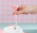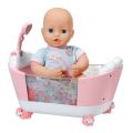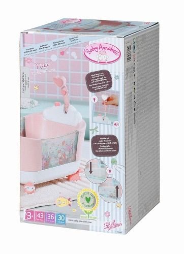 „Hurá, jde se do vany!“ Baby Annabell se pohodlně uvelebí ve své kouzelné vaně. A proč kouzelné? Protože se v ní Baby Annabell může koupat úplně bez vody.Stačí stisknout růžové tlačítko na obláčku a v průhledných bočních stěnách začne stoupat imaginární vodní hladina. Postupně se objevují vodní rostliny, mořská zvířata a podmořští tvorové. Jakmile stisknete tlačítko ve tvaru srdíčka umístěné na sprše, uslyšíte šplouchání vody. Pokud toto tlačítko podržíte stisknuté, rozsvítí se na sprchové hlavici velké srdce a prostřednictvím světelného paprsku vytvoří iluzi proudu vody. Tímto proudem se pak může Baby Annabell hravě osprchovat. Opravdový zážitek z koupání doprovázejí zvuky vody.Baby Annabell Vana se řídí heslem „Osprchuj mě, ale nenamoč mě!“ Protože kvůli elektronice skryté uvnitř se panenka nesmí namočit. Avšak koupání zkrátka patří k dennímu režimu miminka – stejně jako krmení, výměna plenek, procházky, hraní si a spánek. Pokud by ale i přesto někdo naplnil vanu vodou, odteče voda o