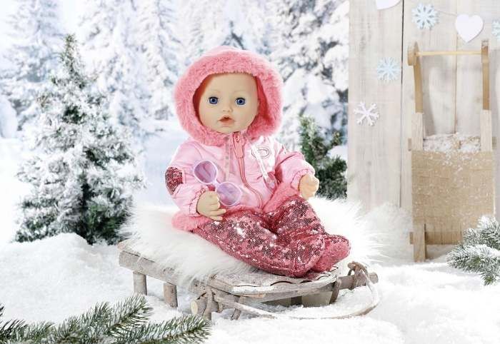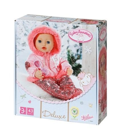 Jako každé děvče, i panenka Baby Annabell je malá parádnice a chce se ostatním líbit. A co by to bylo za holčičku, kdyby se nechtěla krásně ustrojit i v chladné zimě, když půjde ven na procházku nebo sáňkovat? Slušivá zimní kombinéza s flitry Deluxe je lesklá, nechybí jí kapuce a zakrývá i chodidla. Kombinézu pohodlně zapnete zipem. Jako stylový doplněk si panenka Baby Annabell nasadí přiložené sluneční brýle. Sníh už čeká!
