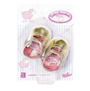 V těchto pohodlných botičkách se Baby Annabell® naučí chodit raz dva. Bude v nich doslova proplouvat pokojíčkem. Že by za tu lehkost mohli krásní motýlci na zadní straně zlatých botiček? Botičky se zavírají na suchý zip, což zaručuje, že panence perfektně padnou. Růžovo-zlatý model je ozdoben klíčem a zámkem. Obě verze botiček zdobí zlaté třpytky.