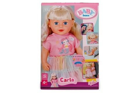 Realistická panenka Carla s jemnými detaily, měkkým tělem a pohyblivými končetinami je ideálním společníkem pro každodenní péči, mazlení a hry. BABY born Carla má velikost 43 cm a nabízí autentický zážitek díky svým realistickým funkcím a měkkému tělíčku. Je vhodná pro děti od 3 let, které chtějí rozvíjet empatii a pečovatelské dovednosti.