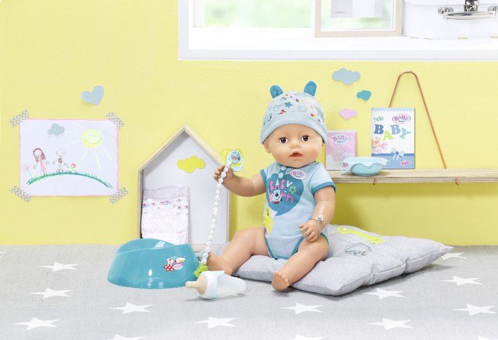 Sada obsahuje: panenka, dětské body, čepičku, dudlík se sponkou, lahvičku, plínku, mističku se lžičkou, nočník a porci kašičky, rodný list a náramky přátelství.