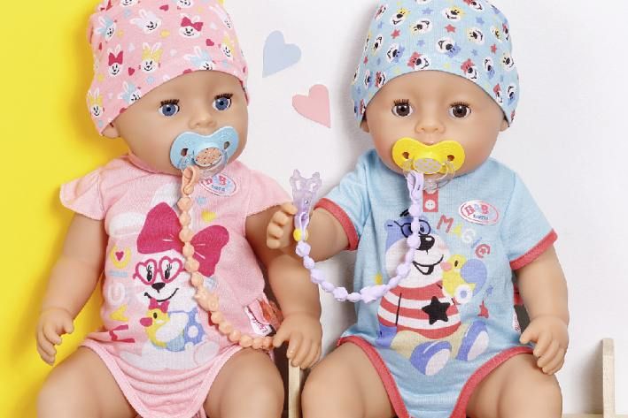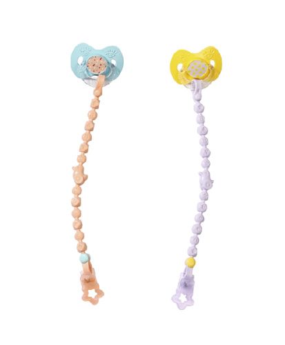Dudlík je nejen pro BABY born velmi užitečný. Miminko jej nadšeně cumlá, když se dívá na něco vzrušujícího nebo když objevuje něco nového. Když je mrzutá, žlutý nebo modrý dudlík ji rychle utiší. Modrá je přece uklidňující barva a žlutá přináší sluníčkovou náladu. Dudlík panence pomáhá také usnout a probudit se. Podle toho, jak otočíš dudlíkem v pusince, BABY born otevře nebo zavře oči, ať je tělo panenky v jakékoli pozici. Řetízek zajistí, že se dudlík neztratí.•Originální doplněk pro panenky BABY born.•Pro nápaditou, rozmanitou a dlouhotrvající hru plnou zábavy.•Dudlík lze použít pro všechny panenky BABY born velikosti 43 cm.•Funkce kouzelného dudlíku (otvírání a zavírání očí) funguje pouze s panenkami „BABY born s kouzelným dudlíkem“.BABY born Kouzelný dudlík s řetízkem a sponkou ve dvou různých barevných provedeních.