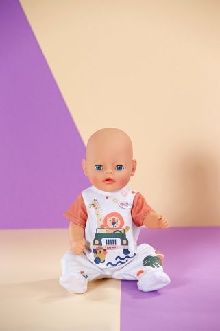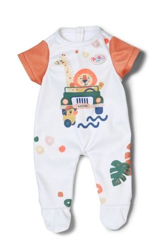 S těmito roztomilými dupačkami s krátkými rukávy může safari začít! • Dupačky s motivy džungle • Vhodné pro panenky velikosti 36 cm • Součástí je ramínko z recyklovaného materiálu • Kvalitní doplněk pro rozšíření kreativní a pestré hry