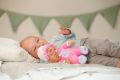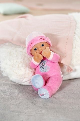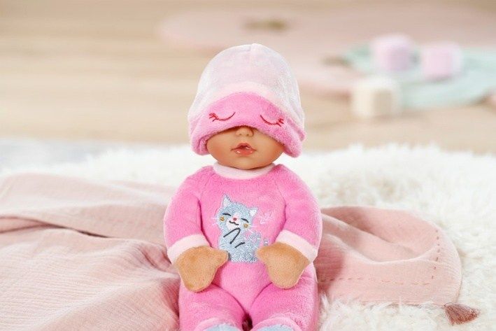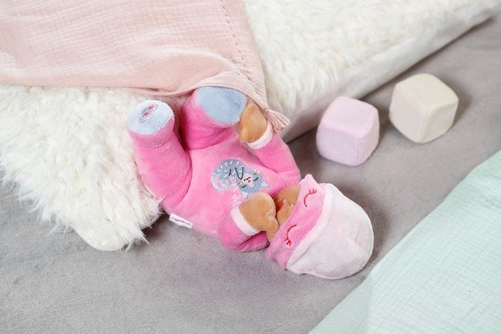 Roztomilá panenka BABY born for babies Spinkáček má měkké látkové tělíčko, měří 30 cm a uvnitř má ukryto chrastítko. Je ideální panenkou pro ty nejmenší děti, aby si s ní už od narození mohly hrát a objevovat svět. Obleček panenky zdobí roztomilá výšivka spinkajícího koťátka. • Originální panenka BABY born • Model „pro nejmenší“ (30 cm) s velmi měkkým tělíčkem panenky • S chrastítkem uvnitř • Vhodná i pro nejmenší děti už od narození • Lze ručně prát