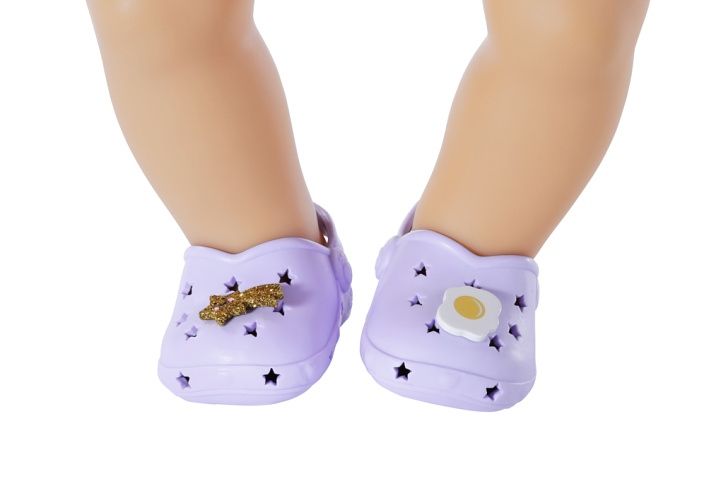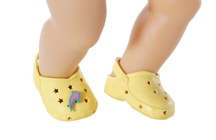 Jsou prázdniny! Na dovolené toho můžeme spoustu zažít a objevit. K tomu ale potřebujeme boty, které jsou vhodné i do vody a které můžeme rychle vyzout, když chceme jít na pískoviště. BABY born Gumové sandálky jsou k dispozici ve čtyřech různých barvách. Žluté jako slunce, zelené jako tráva, fialové jako šeřík a červené jako jahodová zmrzlina. S roztomilými nacvakávacími ozdobami můžete sandálky ozdobit každý den jinak.