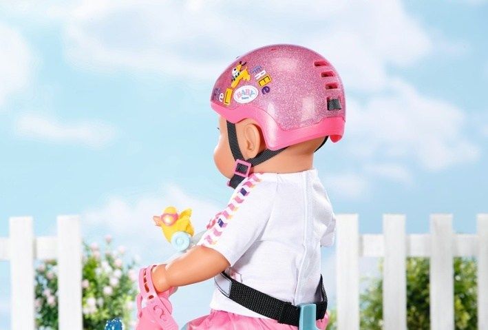 Bezpečnost je důležitá pro každého, a proto si BABY born před každou jízdou nasazuje helmu, ať už vyráží na kole nebo na tříkolce. Díky jasné růžové barvě a třpytkám nelze BABY born přehlédnout. Helma vypadá skvěle i na starších sourozencích BABY born.
