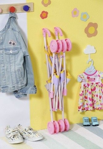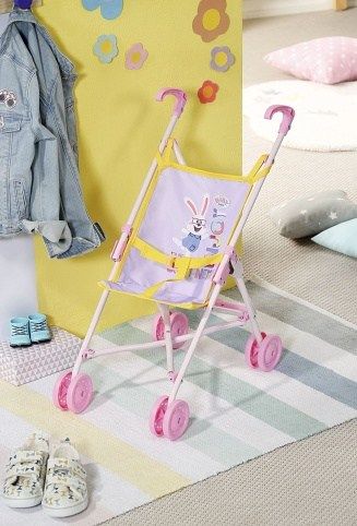 Tento snadno složitelný sportovní kočárek vykouzlí úsměv na každé tváři. BABY born v něm ze svého lila sedátka pozoruje svět a mává na všechny chodce a běžce v parku. Bezpečnostní pásy udrží BABY born v kočárku za všech okolností.