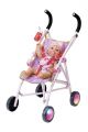 Vnější strana kol se po uvedení kočárku do pohybu rozsvítí jasnými barvami. Když se bude chtít BABY born během jízdy dotknout hvězd, systém pásů ji bezpečně udrží v sedačce. Pro delší výlety po Mléčné dráze je k dispozici lahvička na pití včetně držáku s klipem pro BABY born a její sourozence.