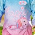 Jednorožci jsou opravdu kouzelní a Baby Born je ve svém kostýmu jednorožce naprosto okouzlující. Pohodlné dupačky v duhových barvách mají kapuci s rozkošnýma ouškama, třpytivým rohem, jednorožčí hřívou a na zádech jsou ozdobeny třpytivými křídly a nechybí ani růžový ocas.