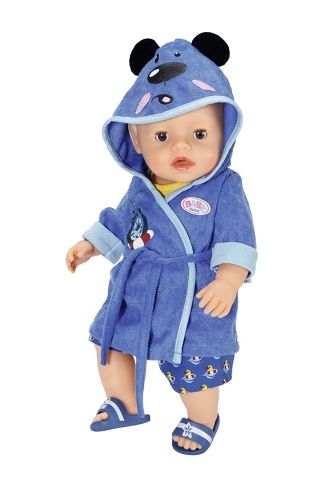 BABY born Koupelnová souprava pro kluky Deluxe pro panenky velikosti 43 cm. Součástí je župan, tričko, plavky a boty.