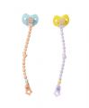 Dudlík je velmi užitečný nejen pro BABY born. Miminko jej nadšeně cumlá, když pozoruje něco vzrušujícího nebo když objevuje něco nového. Když je mrzuté, žlutý nebo modrý dudlík ho rychle utiší. Modrá je přece uklidňující barva a žlutá přináší sluníčkovou náladu. Dudlík panence pomáhá také usnout a probudit se. Podle toho, jak otočíš dudlíkem v pusince, BABY born otevře nebo zavře oči, ať je tělo panenky v jakékoli pozici. Řetízek zajistí, že se dudlík neztratí. • Kvalitní doplněk pro originální panenku BABY born. • Pro radost z nápadité, rozmanité a dlouhotrvající hry. • Funkce kouzelného dudlíku (otvírání a zavírání očí) funguje pouze s panenkami „BABY born s kouzelným dudlíkem“. • Kouzelný dudlík lze použít i jako běžný dudlík pro všechny panenky BABY born velikosti 43 cm. BABY born Kouzelný dudlík se sponkou ve dvou různých barvách.