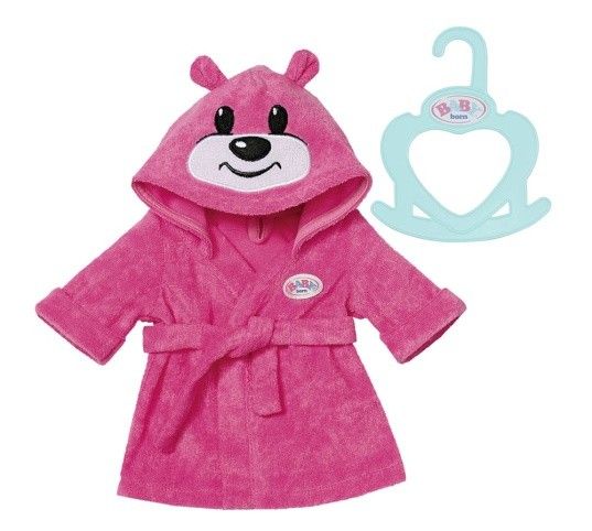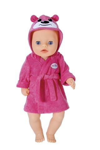 BABY born Little nosí po koupání měkký růžový župan. Z kapuce se usmívá veselý obličej medvídka s roztomilými oušky. Malý „medvídek mýval“ má z hygieny očividně radost. Župánek je ušit ve stylu „easy fit“, takže převlékání hravě zvládnou i ty nejmenší ručičky.