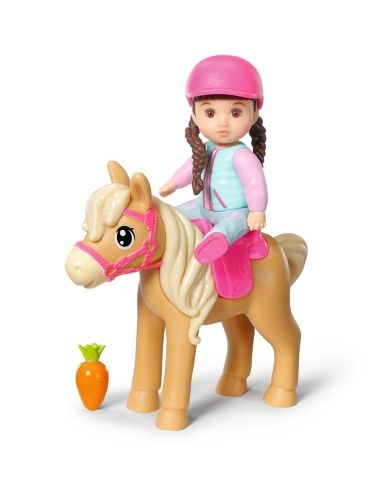 "Roztomilá mini panenka Kim je připravena na vyjížďku ve svém elegantním jezdeckém oblečku se slušivou růžovou helmou. Jejímu koníkovi se ale dnes ven moc nechce. Nevadí! Kim totiž ví jak na něj a má připravený trik. Pomocí lahodné mrkvičky koníka chytře vyláká ze stáje a za chvíli už jsou oba připraveni odcválat za novým dobrodružstvím.
