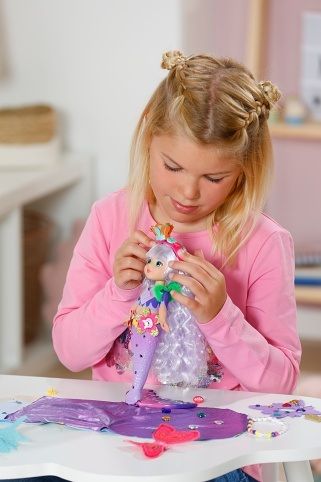 Vítejte ve světě BABY born Glam Up! Zde se vše točí kolem kreativity, třpytu a nekonečných možností tvoření. Glam Up mořské víly zvou děti, aby rozvíjely svou fantazii a každý detail upravovaly podle vlastního vkusu. Pokaždé jinak a originálně. Mořská víla Aura miluje proměny a hraní si s barvami. Od hlavy až po ploutev ji lze česat, zdobit a dekorovat podle vlastního stylu. Díky přiloženým textilním doplňkům, barevným nacvakávacím ozdobám a roztomilému zvířátku s odnímatelnou ploutví vznikají pokaždé nové vzhledy. Přiložená brožurka inspiruje k dalším nápadům i s materiály, které mají děti doma. Obzvlášť kouzelné jsou dlouhé fialové vlasy Sunshine/ Aura, které na slunci mění barvu a přinášejí skutečný wow efekt. Ať už jde o třpytivé účesy, kreativní dekorace nebo hry plné fantazie s BABY born Glam Up Sunshine/Aura objevují děti nekonečné možnosti tvoření a mohou nechat svou kreativitu volně plynout. • Aura – Glam Up mořská víla s magickým UV barevným efektem • Fialové vlasy mění na slunci barvu • Celou postavičku lze upravovat – od účesu až po ploutev • S textilními doplňky, barevnými nacvákavacími ozdobami, roztomilým zvířecím kamarádem a deníčkem plným inspirace. • Pro kreativní česání, zdobení a hry plné fantazie • Vhodné pro děti od 4 let – kreativní zábava se stylingem a účesy plná lesku
