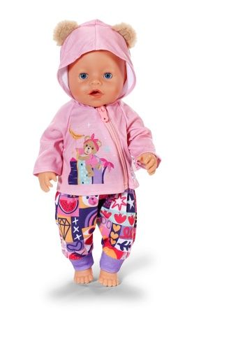 Roztomilý outfit udrží miminko hezky v teple díky kalhotám s patchworkovým vzorem, světle fialovému tričku s dlouhým rukávem a praktické růžové mikině s kapucí.• Obleček pro miminko skládající se z kalhot, trička a bundy• Kalhoty s barevným patchworkovým vzorem• Tričko s dlouhým rukávem ve světle fialové barvě s motivem medvídka• Bunda s kapucí, zipem a oušky medvídka• Vhodné pro panenky velikosti 43 cm a pro medvídky BABY born Teddy• S ramínkem z recyklovaného materiálu• Kvalitní doplněk pro radost z nápadité, rozmanité a dlouhotrvající hry.