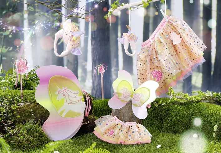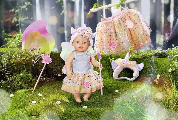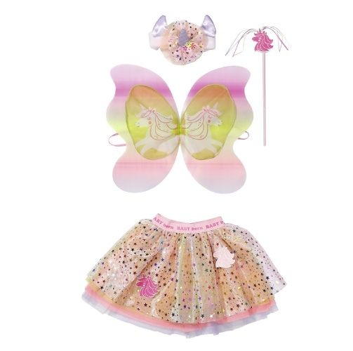 Stačí mávnout kouzelnou hůlkou a na světě jsou dvě nádherné jednorožčí princezny. Není to ale tak jednoduché. Aby byla proměna kompletní, musíš se spolu se svou panenkou převléct. Souprava se skládá ze stejného oblečení pro panenku i pro holčičku. Tylové sukýnky zdobí třpytivé kamínky a nášivky s jednorožci. Čelenky s roztomilými oušky jsou ozdobeny jednorožčím rohem. Není třeba zdůrazňovat, že špičky kouzelných hůlek zdobí jednorožec a barevné třásně. Aby bylo vše dokonalé, obě princezny nosí křídla v pastelových barvách. Souprava je vhodná pro holčičky vysoké 98 až 116 cm.•Originální oblečení a doplňky pro panenky BABY born.•Pro nápaditou, rozmanitou a dlouhotrvající hru plnou zábavy.•Pro holčičky vysoké 98 až 116 cm.BABY born Oblečení "Jednorožec" pro panenku i pro holčičku. Součástí je sukýnka, čelenka, křidélka a kouzelná hůlka. Vždy po jednom pro panenku a pro holčičku.