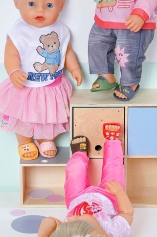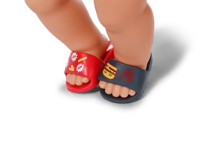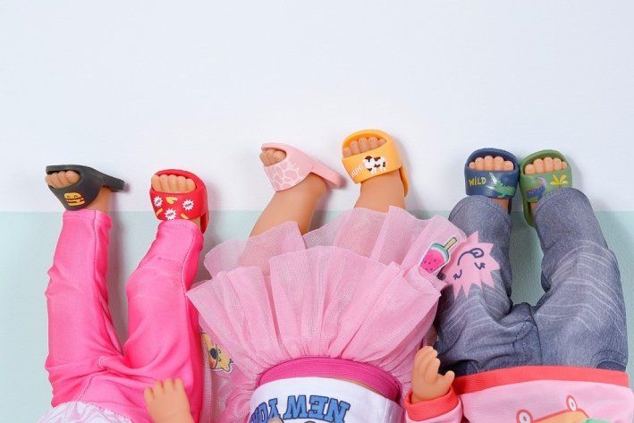 S těmito barevnými pantofli může BABY born vesele procházet teplými letními dny. • Stylové barevné pantofle • Vhodné pro panenky velikosti 43 cm • Kvalitní doplňky pro radost z nápadité, rozmanité a dlouhotrvající hry