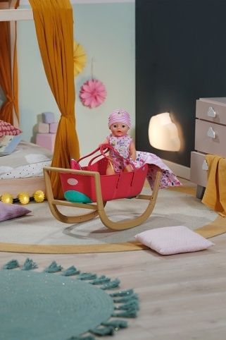 BABY born Postýlka 3 v 1 s nacvakávacími ozdobami. • Univerzální design 3 v 1: Postýlku lze v několika jednoduchých krocích snadno přeměnit na přenosný košík, kolébku nebo dětskou postýlku. • Kompletní sada lůžkovin: Měkký polštářek ve tvaru melounu, měkká přikrývka s motivy ovoce a matrace. • Sladké usínání: Díky stabilní konstrukci a jemnému houpání můžou panenky a plyšáci usínat jako v opravdové kolébce. • Kreativita: Pomocí barevných nacvakávacích ozdob, které lze připevnit na okraj košíku a na rukojeti, lze postýlku různě zdobit znovu a znovu.