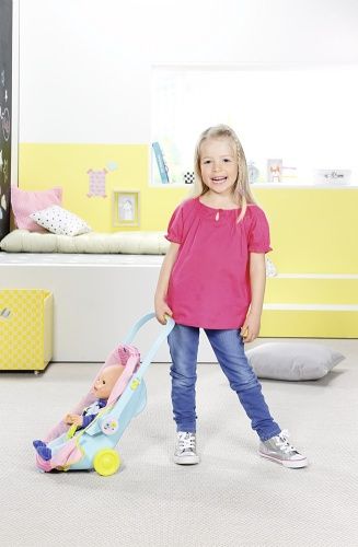 Nejdříve je tu přenášecí funkce: cestovní sedačku můžete jednoduše a pohodlně přenášet z místa A do místa B uchopením za tyrkysové madlo. Kdyby se BABY born® cestou nudila, může si čas zkrátit třeba počítáním hvězdiček na pruhované látce, která sedačku zdobí. Funkce číslo dvě – sedačku snadno nastavíte do vzpřímené pozice a sedačka pak funguje jako křesílko, které BABY born® poskytne skvělý výhled všude kolem. A teď přichází zlatý hřeb, funkce číslo tři. Díky kolečkům můžete BABY born® v sedačce pohodlně táhnout vedle sebe. Sedačka je samozřejmě vybavena bezpečnostními popruhy, a tak je BABY born® na cestách vždy v bezpečí. Slyšíte, jak říká „Rychleji, rychleji!“• Originální doplněk pro panenky BABY born®.• Pečlivě navržené doplňky rozvíjejí dětskou představivost a otevírají nové možnosti a témata hry. BABY born® Přenosná sedačka na kolečkách pro přenášení, sezení a převážení.