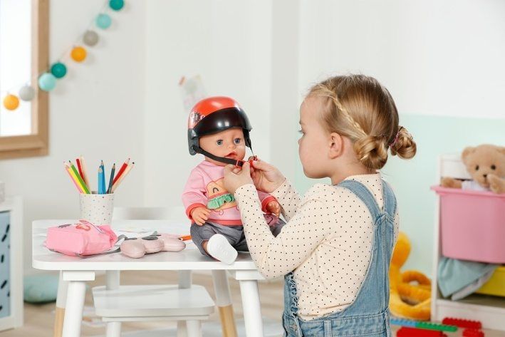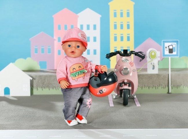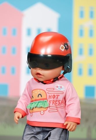 Nasedat na skútr a hurá do města! Ale počkat, nezapomněla BABY born na něco? Správně – přeci přilba! Chrání před zraněním a zároveň vypadá opravdu stylově. Její pohyblivé hledí zaručuje jasný výhled na vše před sebou. Šťastnou cestu, BABY born!