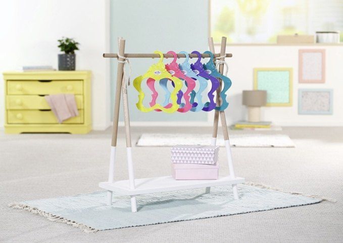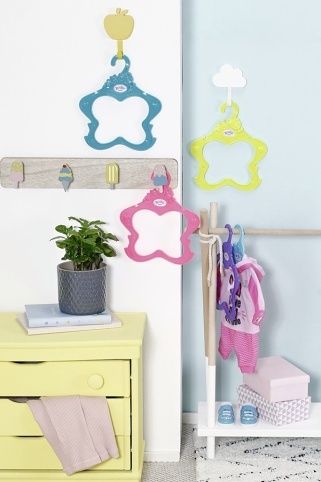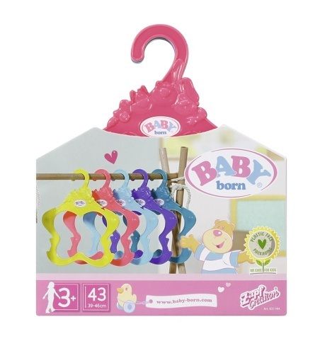BABY born se rozhodla udělat si pořádek ve skříni. A to se neobejde bez praktických ramínek. Balení pěti kusů si BABY born rozbalí před sebe a postupně na ramínka věší své oblíbené kousky. Jakou z pěti barev ramínek vybere pro své nejmilejší šatičky? Růžovou, fialovou, limetkovou, zelenou nebo mátovou? • Kvalitní doplněk pro originální panenku BABY born. • Pro radost z nápadité, rozmanité a dlouhotrvající hry. BABY born Ramínka, 5 kusů, pro oblečení pro panenku velikosti 43 cm.