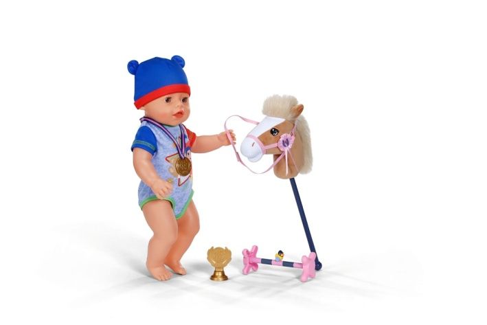 BABY born sada na Hobby horsing pro panenky s koníkem na tyči a doplňky na závody. • Panenky se mohou zapojit do hobby horsingu • Koník má měkkou plyšovou hlavu pro skvělé vyjížďky • Kačenka Berta se postará o zábavný trénink • Medaile a vítězný pohár pro šampiony • Vhodné pro panenky velikosti 36 cm a 43 cm