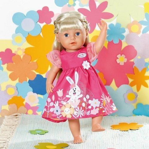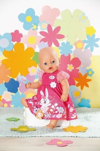 Panenka BABY born vyráží ve svých květinových šatičkách na rozkvetlou louku. To je totiž skvělé místo pro hru na schovávanou. Naštěstí je její zářící hlavička mezi květy dobře vidět. Stejně jako panenka BABY born skáče po louce, přesně tak poskakuje na růžových šatičkách mezi barevnými květy i zaječice Bella. Některé kytičky na šatičkách stejně jako květina v pase jsou 3D nášivky. Sladké rukávky jsou ušity z růžového tylu a připomínají jemné okvětní lístky. • Kvalitní oblečení pro originální panenku BABY born. • Pro radost z nápadité, rozmanité a dlouhotrvající hry. BABY born Šatičky s kytičkami pro panenky velikosti 43 cm. Včetně ramínka.