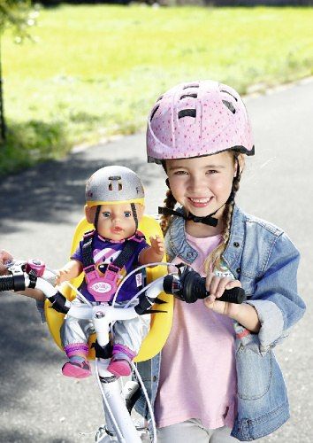 BABY born sice už pilně jezdí na svém kole se stabilizačními kolečky, ale delší trasy ještě krátké nožky nezvládnou. To se malá cestovatelka raději veze v sedačce na kole své malé maminky. Pohodlná sedací plocha ergonomicky tvarované sedačky je potištěna geometrickými vzory. Díky systému popruhů jede BABY born v sedačce vždy stabilně, i když to houpá a hopsá. Pomocí suchých zipů lze sedačku upevnit na řídítka různých dětských kol. A vyrážíme! •Kvalitní doplněk pro originální panenku BABY born.•Pro radost z nápadité, rozmanité a dlouhotrvající hry.•Vhodný i pro menší panenky.BABY born Sedačka na kolo pro panenky velikosti 43 cm. S bezpečnostními pásy.