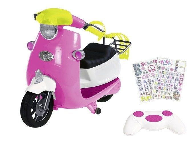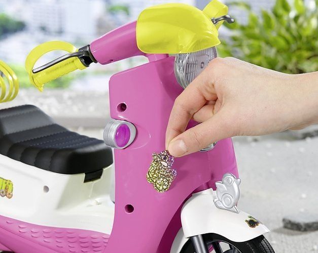 Panenka BABY born jezdí po městě nejraději na skútru. Růžové vozítko se řídí dálkovým ovladačem. Při zatáčení vlevo a vpravo blikají blinkry. Díky úchytům na řídítkách sedí BABY born za volantem skútru vždy pohodlně a bezpečně. • Oblíbený skútr v novém designu s elegantními neonovými detaily. • S dálkovým ovládáním a skvělými funkcemi na super výlety pro BABY born miminka a Starší sourozence BABY born. • Pomocí dálkového ovládání jezdí doleva, doprava, dopředu nebo dozadu. • Když zabočí doleva nebo doprava, zablikají blinkry. • Pro ještě atraktivnější vzhled jsou součástí třpytivé samolepky pro individuální ozdobení. • Se světelnými efekty. • Baterie nejsou součástí balení. • Pro panenky velikosti 43 cm. • Skvěle se hodí k dalším doplňkům pro panenky BABY born z kolekce Město, které je možné dokoupit samostatně: BABY born Přilba na skútr a BABY born Oblečení na skútr Deluxe. • Balení: obal bez plastů – barevná krabice s obrázky produktu. Na baterie: 4x AA (nejsou součástí balení), 2x AAA (nejsou součástí balení)