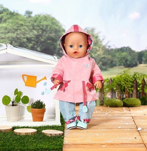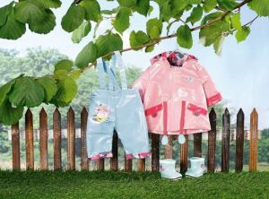 BABY born Souprava do deště Deluxe pro panenky velikosti 43 cm. Součástí je pláštěnka, kalhoty a holínky.