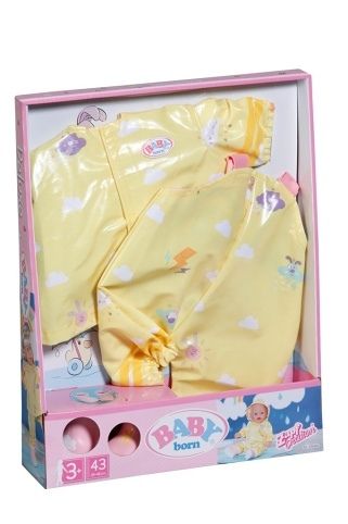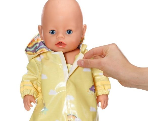 Stylová pláštěnka s roztomilým potiskem a holinkami. To znamená, že BABY born je dokonale vybavena pro chladné a vlhké dny roku. Vhodné také pro starší sourozence BABY born a medvídka BABY born. • Kvalitní oblečení pro originální panenku BABY born. • Pro radost z nápadité, rozmanité a dlouhotrvající hry. BABY born Souprava do deště Deluxe, 43 cm pro panenky velikosti 43 cm. Součástí je pláštěnka, kalhoty a holinky.