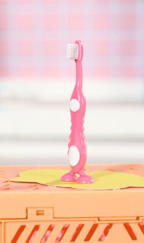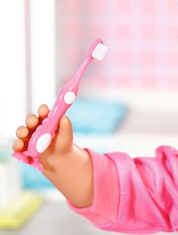 „Ach…“ Panenka BABY born je unavená. Vždyť už je pěkně pozdě. Tak ještě honem vyčistit zuby růžovým zubním kartáčkem a rychle se převléknout do pyžamka. Měkoučké pyžamko s dlouhým rukávem má originálně zpracovaný spodní lem. Na růžové látce je potisk zajíčka Benna a zdá se, že už i on se těší do svého pelíšku. Malý snílek si k tričku oblékne vzorované tyrkysové kalhoty. Pantoflíčky a modrá maska na spaní jsou ozdobeny tvářičkou zajíčka s roztomilými oušky. BABY born je nyní připravena se pohodlně uvelebit na svém polštářku s barevnými bambulkami. Dobrou noc! • Kvalitní oblečení pro originální panenku BABY born. • Pro radost z nápadité, rozmanité a dlouhotrvající hry. BABY born Souprava na dobrou noc Deluxe pro panenky velikosti 43 cm. Součástí je pyžamkové tričko, kalhoty, pantoflíčky, maska na spaní, polštářek a zubní kartáček.