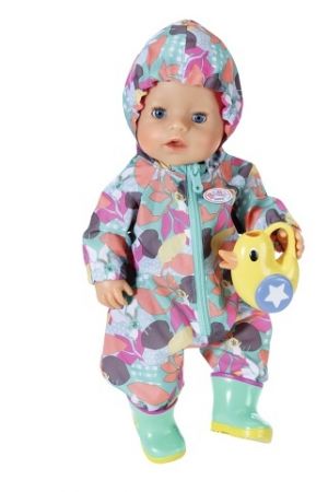 Jaro je obdobím sázení. Napřed se ale ze záhonů odstraní podzimní listí. A právě to je ten pravý čas obléct si overal BABY born. Tyrkysový overal s kapucí a zipem je na přední straně poset potiskem barevných listů. V rozbředlé hlíně nosí malá zahradnice nejraději holínky. Jakmile jsou sazeničky a semena zasazené, BABY born vše zalije konvičkou ve tvaru kačenky.
