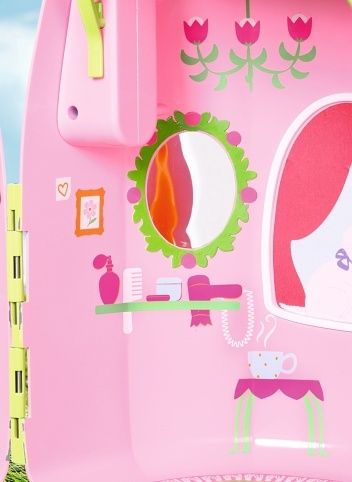 Domeček pro všechny obyvatele pohádkového světa Storybook. Otevřením domečku ve tvaru květiny se odhalí nádherný domov pro víly, který je plný nápadů na hraní a různých doplňků. Obývací pokoj je vybaven stolečkem a krbem. Ze stropu herny visí houpačka. Přihrádka na stěně je skvělým místem pro uložení kouzelné hůlky, třeba když se víla houpe na houpačce. Když se někdo na houpačce zasněně houpe tam a zpět, slyší to celý pohádkový svět. Při houpání totiž zvoní květinový zvonek připevněný k horní části houpačky. Na zábradlí první střešní terasy lze připevnit dalekohled. Je to skvělé místo na sledování nových příběhů a vyhlížení kouzelných kamarádů. Po celodenním dobrodružství můžou obyvatelé pohádkového světa odpočívat na lehátku v druhé části terasy. Rukojeť ve tvaru obří trávy poskytuje dostatek stínu. Zároveň lze díky praktické rukojeti uzavřený domeček jednoduše přenášet. • Kvalitní doplněk pro originální panenky BABY born Storybook. • Pro panenky velikosti 18 cm. • Pro radost z nápadité, rozmanité a dlouhotrvající hry. BABY born Storybook Domeček – skládací domeček se stolečkem, krbem, odpočinkovou zónou a dalekohledem.