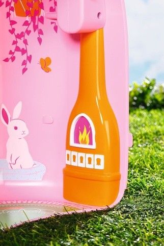Domeček pro všechny obyvatele pohádkového světa Storybook. Otevřením domečku ve tvaru květiny se odhalí nádherný domov pro víly, který je plný nápadů na hraní a různých doplňků. Obývací pokoj je vybaven stolečkem a krbem. Ze stropu herny visí houpačka. Přihrádka na stěně je skvělým místem pro uložení kouzelné hůlky, třeba když se víla houpe na houpačce. Když se někdo na houpačce zasněně houpe tam a zpět, slyší to celý pohádkový svět. Při houpání totiž zvoní květinový zvonek připevněný k horní části houpačky. Na zábradlí první střešní terasy lze připevnit dalekohled. Je to skvělé místo na sledování nových příběhů a vyhlížení kouzelných kamarádů. Po celodenním dobrodružství můžou obyvatelé pohádkového světa odpočívat na lehátku v druhé části terasy. Rukojeť ve tvaru obří trávy poskytuje dostatek stínu. Zároveň lze díky praktické rukojeti uzavřený domeček jednoduše přenášet.
