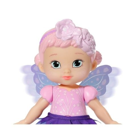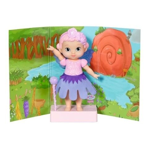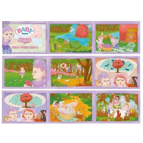 Oblečení Fialkové víly je stejné jako její jméno – fialové s trochou růžové. Když se jí dotkneš kouzelnou hůlkou na bříšku, začne mávat fialovými křidélky. Na milé tvářičce se skrývá kouzelný obraz, který spatříš, jen když svítí slunce. Balení obsahuje i malou obrázkovou knížku a vlastní pódium, které můžeš použít ke hraní nádherných příběhů. Když se kouzelná hůlka zasune do pódia, osvětlí jeviště dvě kouzelná světýlka střídajícími se barvami. Kulisy scény jsou potištěny z obou stran a ukazují úžasný svět, ve kterém Fialková víla žije. Milovnice krásných vůní žije ve veliké šnečí ulitě, kde pomocí svých pozoruhodných čichových schopností vytváří ty nejvybranější parfémy. Spolu se svým nejlepším kamarádem roztomilým jelenem vybírá na jejich výrobu ty nejvoňavější květiny. • Originální panenka BABY born. • Velikost 18 cm. • S funkcí třepotajících křídel a malbou na obličeji, která mění barvu. • Podstavec s LED osvětlením. • Přináší svůj vlastní pohádkový svět. • Funguje na baterie (nejsou součástí). BABY born Storybook Fialková víla je panenka velikosti 18 cm. Součástí je kouzelná hůlka, pódium, kulisy a obrázková knížka. Na baterie: 3x LR44 (jsou součástí balení)