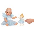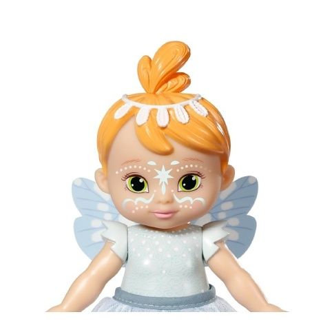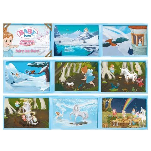 Ledová víla má na sobě jemně modré šaty připomínající ledové květiny. Když se jí dotkneš kouzelnou hůlkou na bříšku, začne mávat nádhernými křidélky. Na roztomilé tvářičce se ukrývají namalované ledové krystalky, které spatříš, jen když svítí slunce. Balení obsahuje i malou obrázkovou knížku a vlastní pódium, které můžeš použít ke hraní nádherných příběhů. Když se kouzelná hůlka zasune do pódia, osvětlí jeviště dvě kouzelná světýlka střídajícími se barvami. Kulisy scény jsou potištěny z obou stran a ukazují úžasný svět, ve kterém Ledová víla žije. Rozvážná a vždy všem nápomocná malá víla žije ve věži v nejchladnější části světa pohádek. Se svým nejlepším kamarádem ledňáčkem je vždy připravena každého vyslechnout a v případě potřeby se rázně ujímá vedení, protože za každé situace přesně ví, co je třeba udělat. • Originální panenka BABY born. • Velikost 18 cm. • S funkcí třepotajících křídel a malbou na obličeji, která mění barvu. • Podstavec s LED osvětlením. • Přináší svůj vlastní pohádkový svět. • Funguje na baterie (nejsou součástí). BABY born Storybook Ledová víla je panenka velikosti 18 cm. Součástí je kouzelná hůlka, pódium, kulisy a obrázková knížka. Na baterie: 3x LR44 (jsou součástí balení)